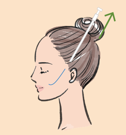 特殊なコグのついた溶ける糸をコメカミから頬にかけて挿入することでフェイスラインのリフトアップができる施術です。