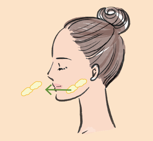 口腔内を1〜2cm 程度切開しバッカルファットを引き出して切除することで小顔効果とたるみ予防が期待できます。